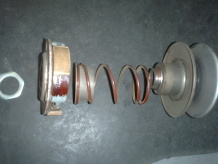 二枚目 写真のスプリングの右側をベアリングの押さえに使う為逆に向けて組み付けます。